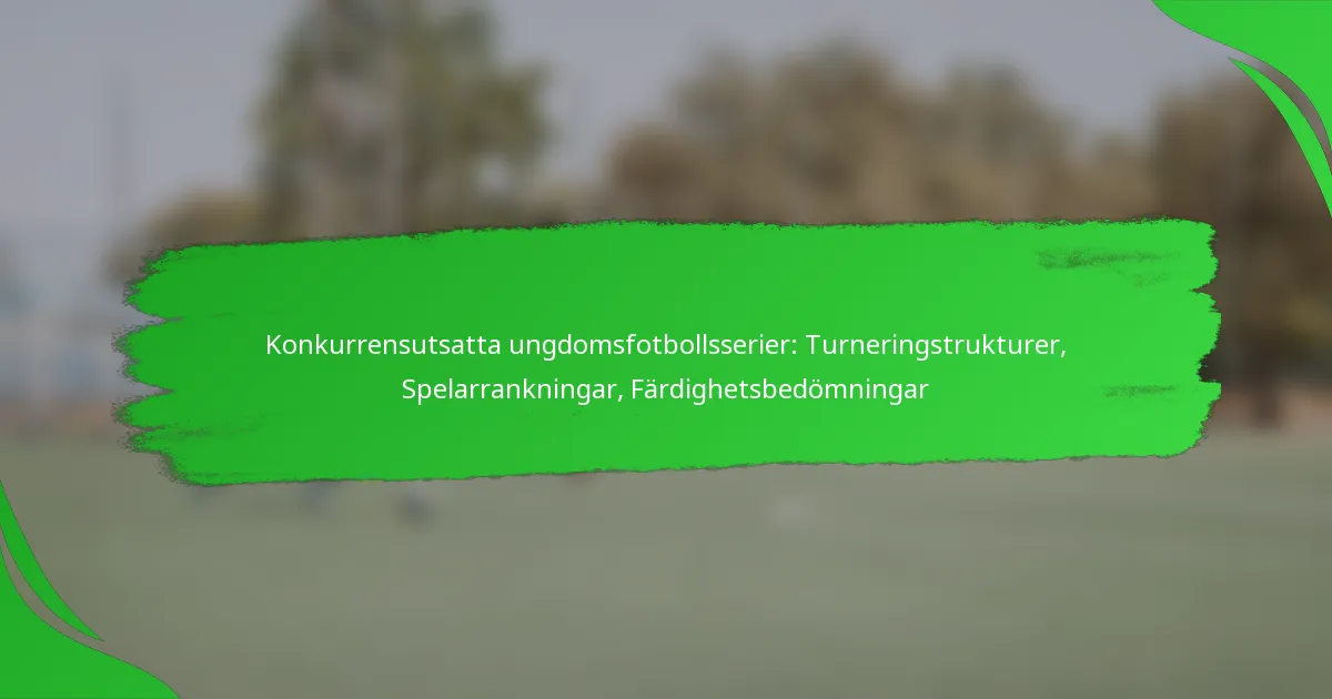 Konkurrensutsatta ungdomsfotbollsserier använder olika turneringsstrukturer som formar lagdynamik och spelartillväxt, med format som round-robin och utslagsturneringar som erbjuder distinkta upplevelser. Spelarrankingarna fastställs genom prestationsmått och färdighetsbedömningar, vilket återspeglar individuella bidrag och påverkar framtida möjligheter. Dessutom är metoder för färdighetsbedömning, inklusive övningar och utvärderingar, avgörande för att identifiera spelares tekniska, taktiska och fysiska förmågor.